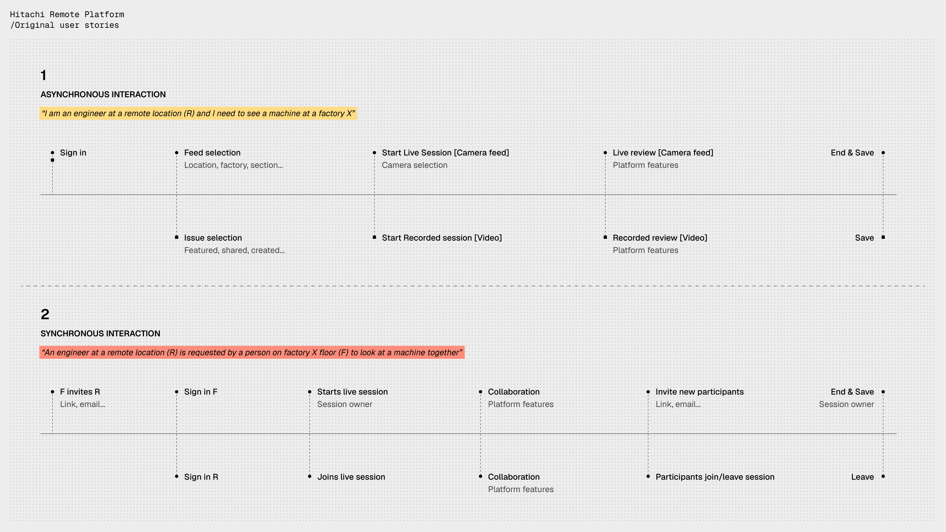 I was brought in to cooperate with Hitachi’s R&D members for 2 to 3 weeks to conceptualize and prototype a platform for collaboration between factory and remote engineers, technicians and managers, taking advantage of state of the art cameras and their software infrastructure, while ensuring optimal security and production standards.